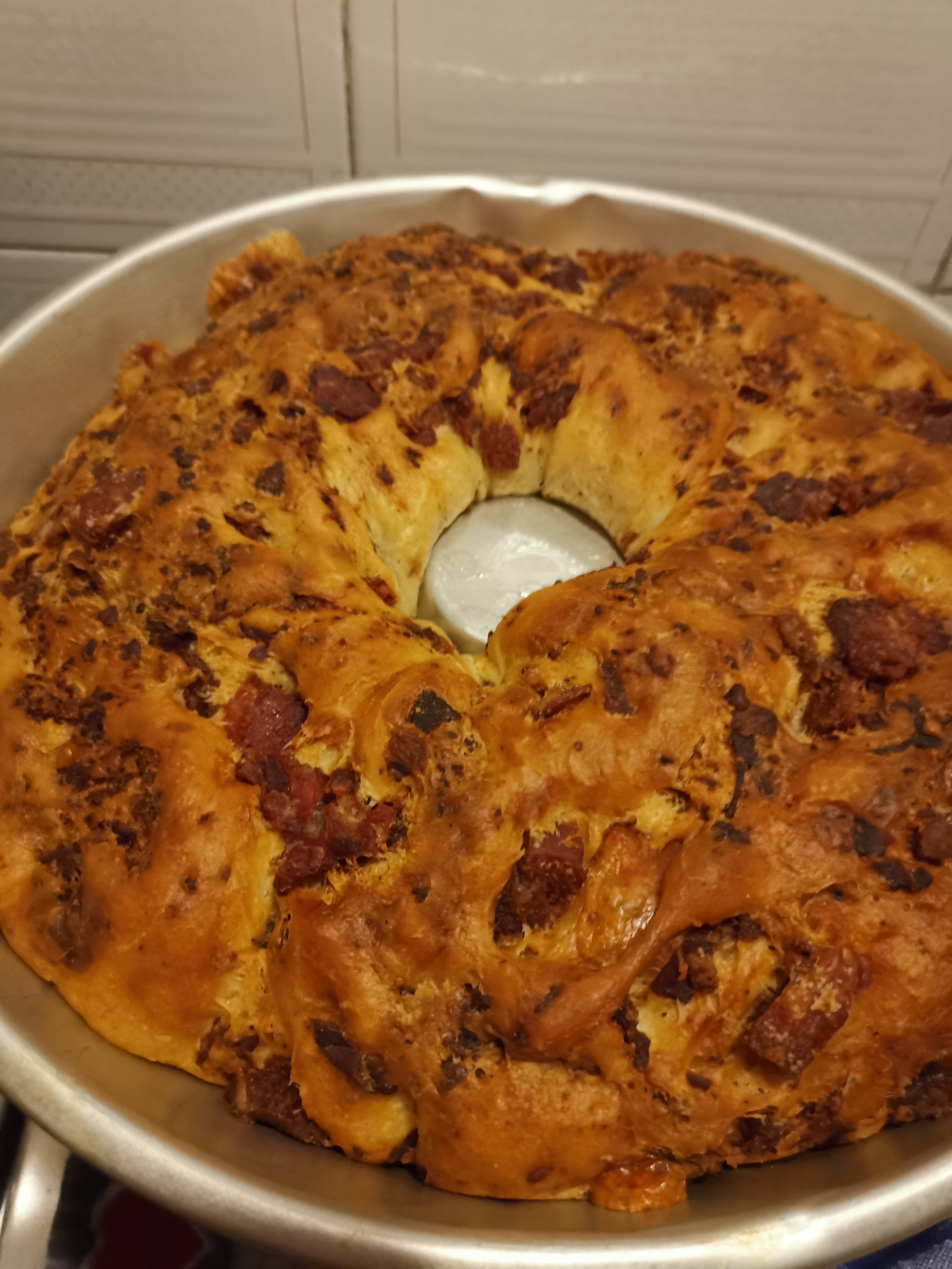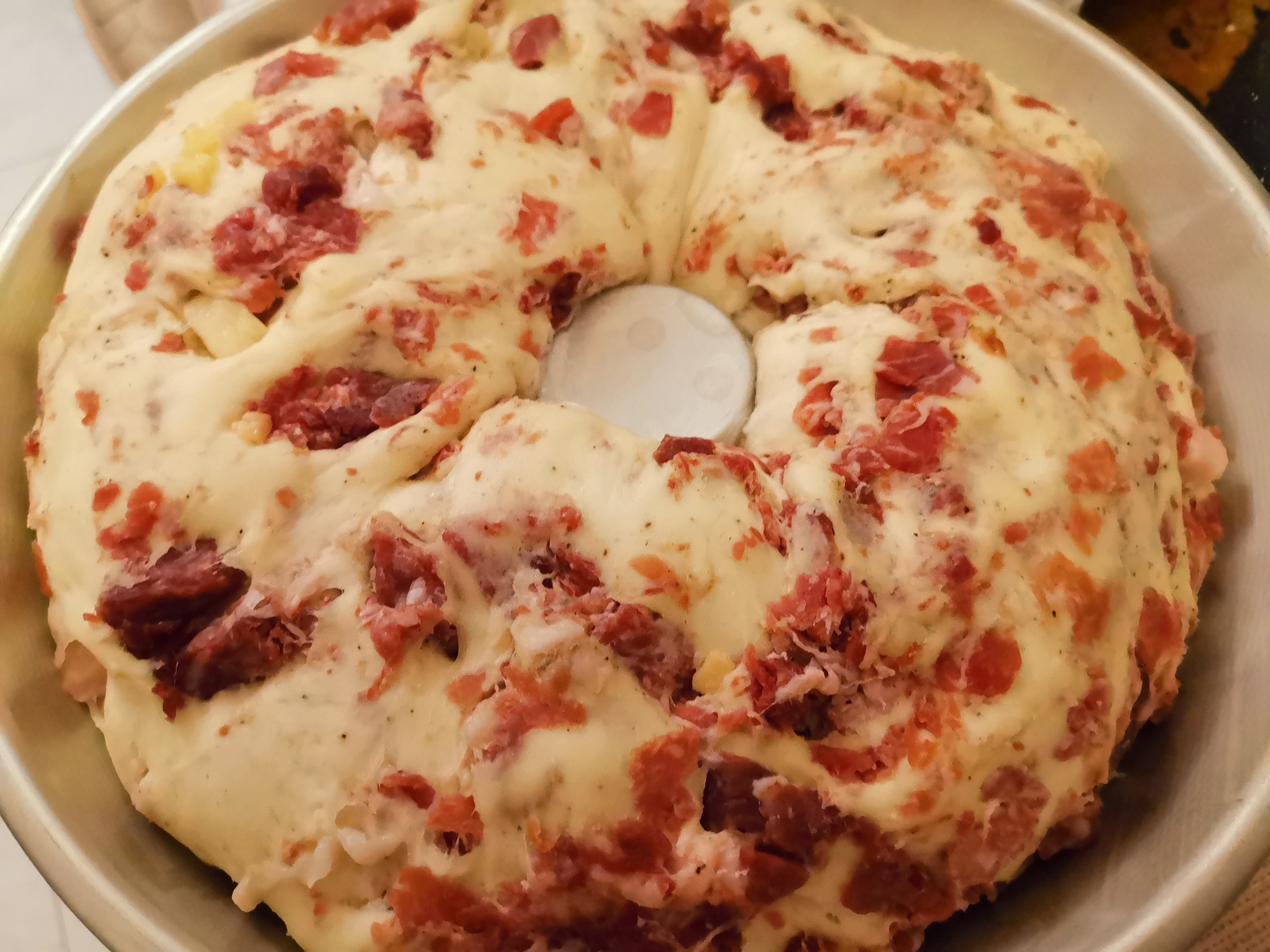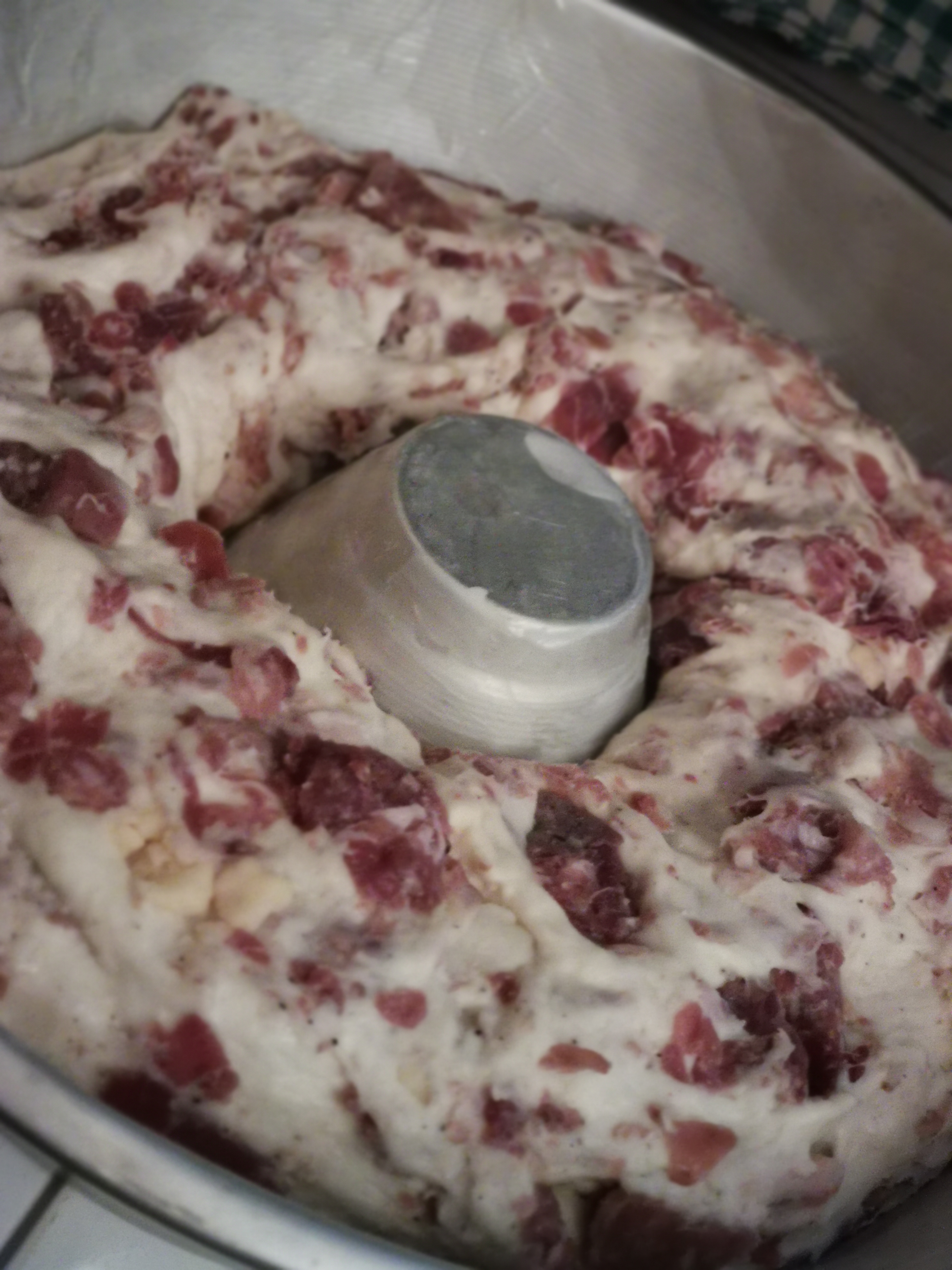 Lasciatelo lievitare a temperatura ambiente lontano da correnti d’aria per circa 1 ora, 1 ora e mezza. Una volta che il volume sarà quasi raddoppiato cuocete il vostro casatiello in forno statico preriscaldato a 170° per 75 minuti, nel ripiano più basso del forno.